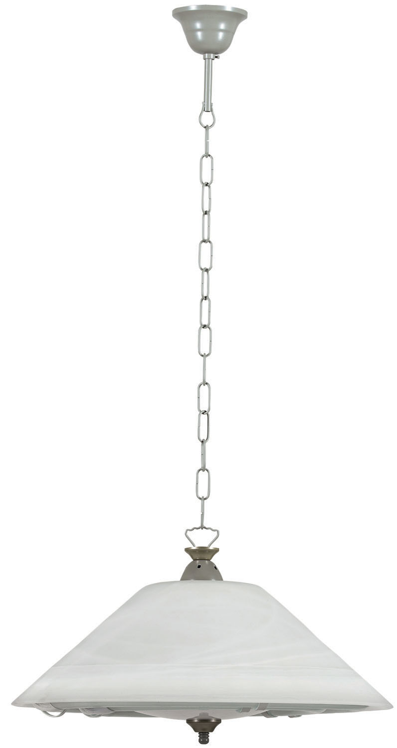 Φωτιστικό φθορίου γυαλί λευκό αλάβαστρο με μεταλλικά στηρίγματα ανάρτηση αλυσίδα νίκελ ματ και λάμπα 40w