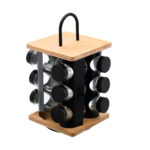 ESTIA ΒΑΣΗ ΜΠΑΧΑΡΙΚΩΝ BAMBOO ESSENTIALS ΜΕ 12 ΓΥΑΛΙΝΑ ΔΟΧΕΙΑ ΠΕΡΙΣΤΡΕΦΟΜΕΝΗ ΜΑΥΡΗ