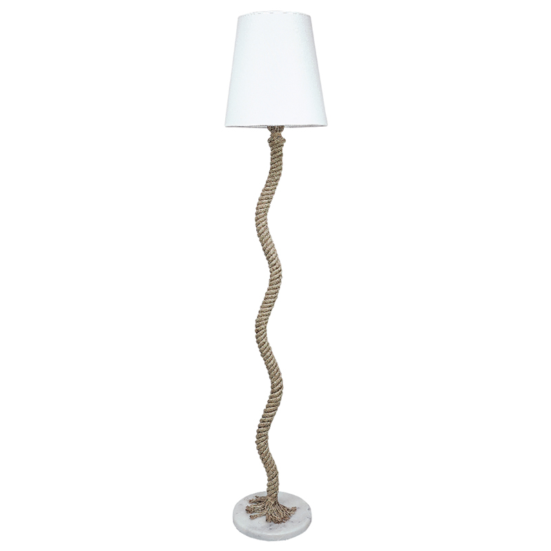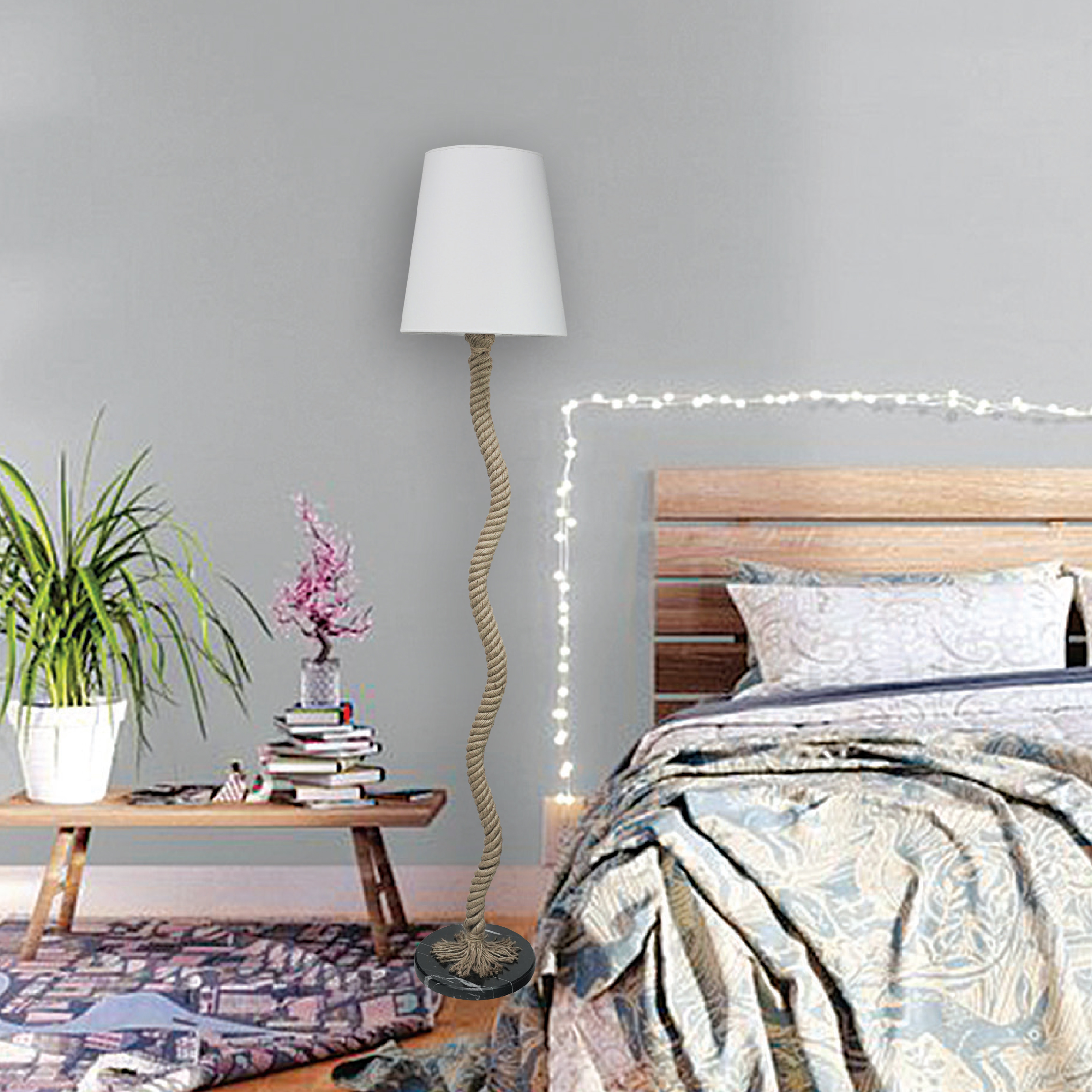Πρόκειται για ένα επιδαπέδιο φωτιστικό κατασκευασμένο από καφέ σχοινί. Η βάση του είναι λευκή, οπότε μπορεί να τοποθετηθεί σε οποιονδήποτε μοντέρνο χώρο. Ο φωτισμός του έχει ρομαντική διάθεση λόγω του λευκού υφασμάτινου καπέλου.