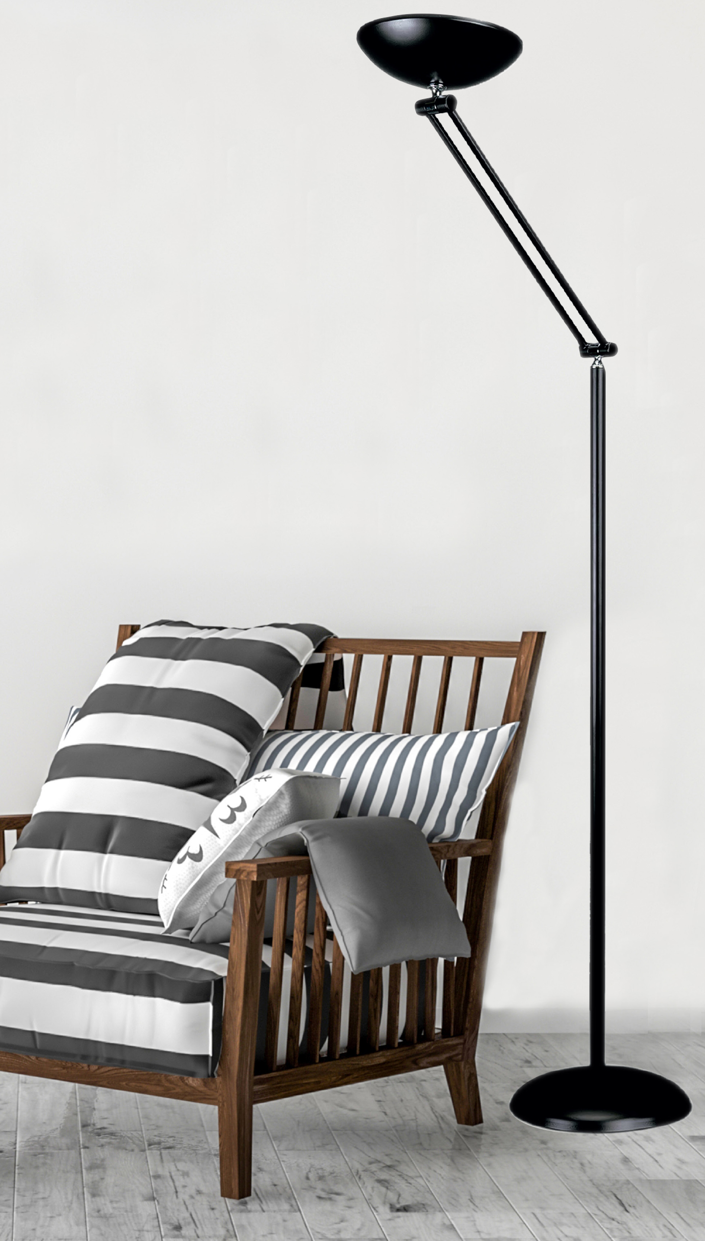 Πρόκειται για ένα λευκό μεταλλικό επιδαπέδιο φωτιστικό. Τόσο οι βραχίονες όσο και το καπάκι που καλύπτει τον λαμπτήρα κινούνται ώστε να λάβουν την επιθυμητή θέση. Το φως διαχέεται ομοιόμορφα στον χώρο.