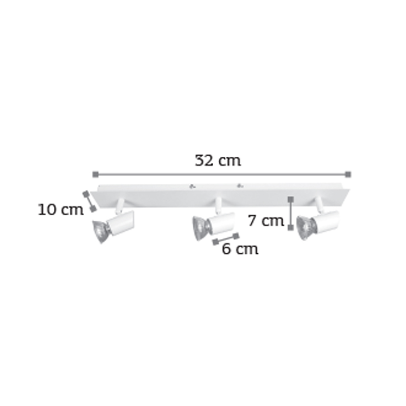 Πρόκειται για ένα μεταλλικό σποτ σε λευκή απόχρωση με τρεις λαμπτήρες. Το μπροστινό μέρος του κινείται προς οποιαδήποτε κατεύθυνση.
