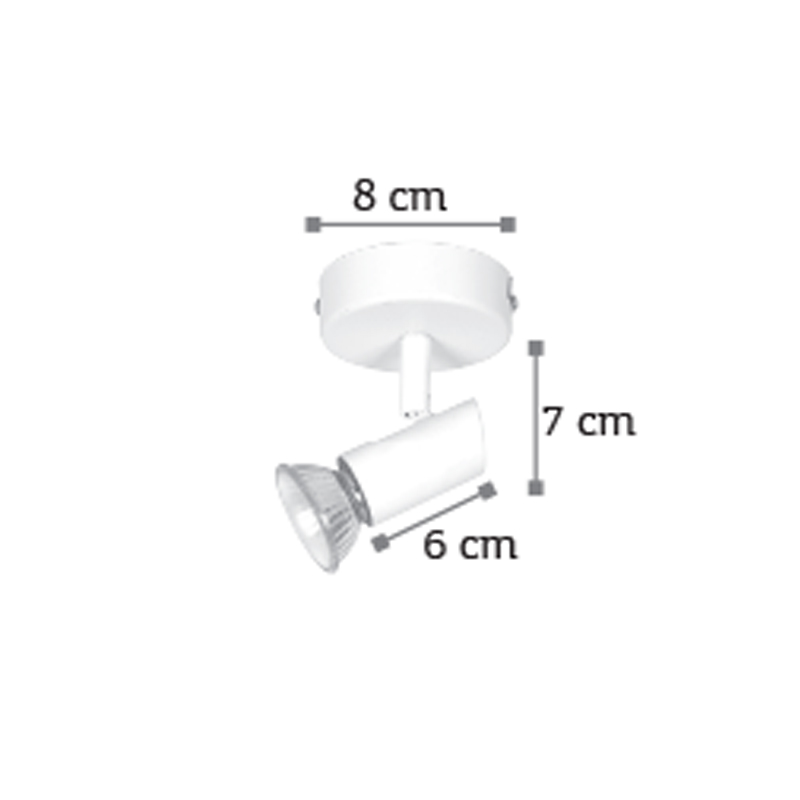 Πρόκειται για ένα μεταλλικό σποτ σε λευκή απόχρωση με έναν λαμπτήρα. Το μπροστινό μέρος του κινείται προς οποιαδήποτε κατεύθυνση.