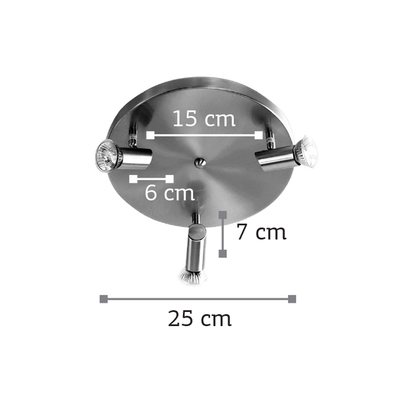 Πρόκειται για ένα μεταλλικό σποτ σε νίκελ ματ απόχρωση με τρεις λαμπτήρες. Το μπροστινό μέρος του κινείται προς οποιαδήποτε κατεύθυνση.