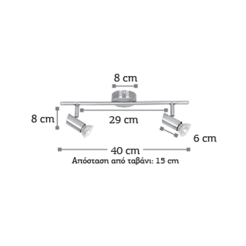 Πρόκειται για ένα μεταλλικό σποτ σε νίκελ ματ απόχρωση με δύο λαμπτήρες. Το μπροστινό μέρος του κινείται προς οποιαδήποτε κατεύθυνση.