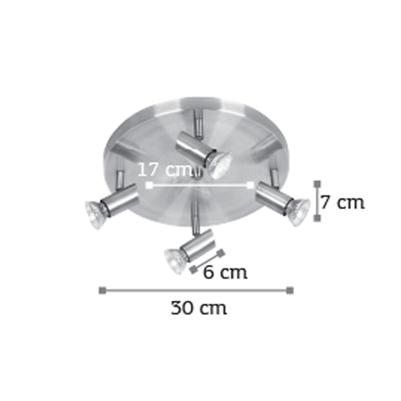Πρόκειται για ένα μεταλλικό σποτ σε νίκελ ματ απόχρωση με τέσσερις λαμπτήρες. Το μπροστινό μέρος του κινείται προς οποιαδήποτε κατεύθυνση.