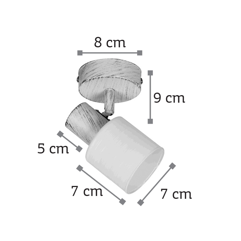 Πρόκειται για ένα μεταλλικό σποτ σε χρώμιο απόχρωση με έναν λαμπτήρα. Το λευκό γυαλί επιτρέπει στο φως να διαχέεται ομοιόμορφα στον χώρο. Το μπροστινό μέρος του κινείται προς οποιαδήποτε κατεύθυνση.