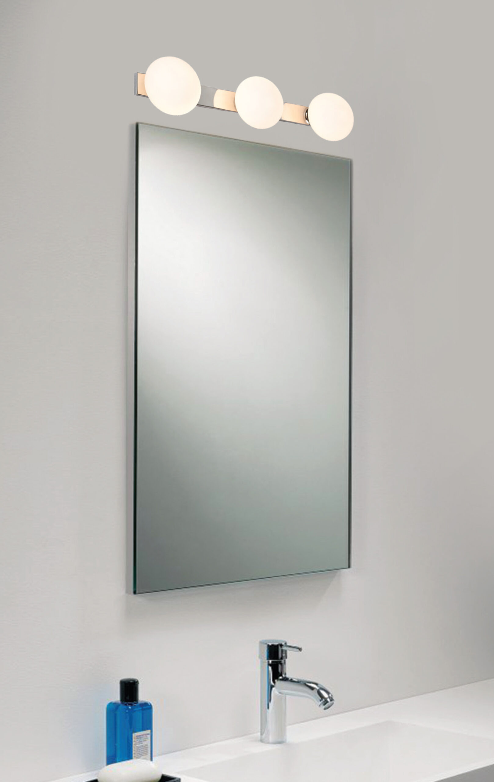 Πρόκειται για ένα επιτοίχιο φωτιστικό από χρώμιο μέταλλο λευκή οπαλίνα και τρεις λαμπτήρες. Η μίνιμαλ σχεδίαση και το σχήμα του το τοποθετεί σε μοντέρνους χώρους εσωτερικής διακόσμησης. Τοποθετείται και ως φωτιστικό οροφής!
