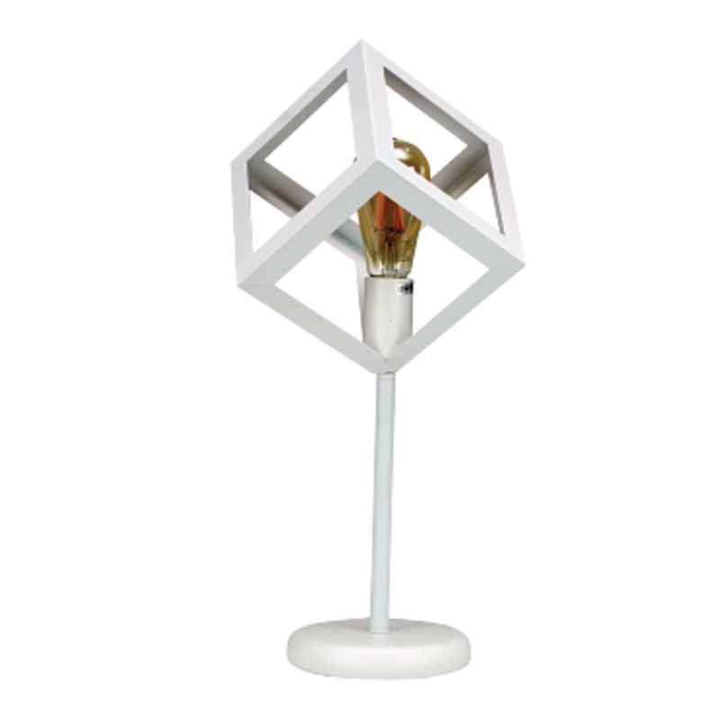 Πρόκειται για ένα επιτραπέζιο φωτιστικό με μίνιμαλ γεωμετρική σχεδίαση κατασκευασμένο από λευκό μέταλλο. Επιτρέπει τη διάχυση του φωτός και είναι κατάλληλο για οποιονδήποτε μοντέρνο εσωτερικό χώρο.
