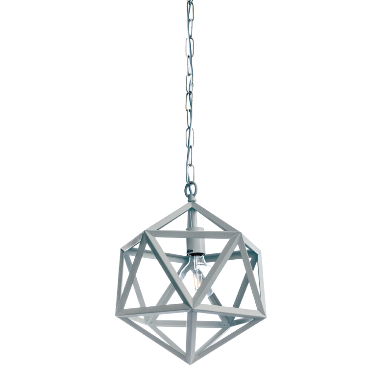 Πρόκειται για ένα μεταλλικό κρεμαστό φωτιστικό σε χρώμα λευκό. Η μίνιμαλ γεωμετρική του σχεδίαση το τοποθετεί σε οποιονδήποτε μοντέρνο εσωτερικό χώρο. Η ανάρτησή του ρυθμίζεται για να λάβει το επιθυμητό ύψος. Το φως διαχέεται σε όλον τον χώρο ομοιόμορφα.