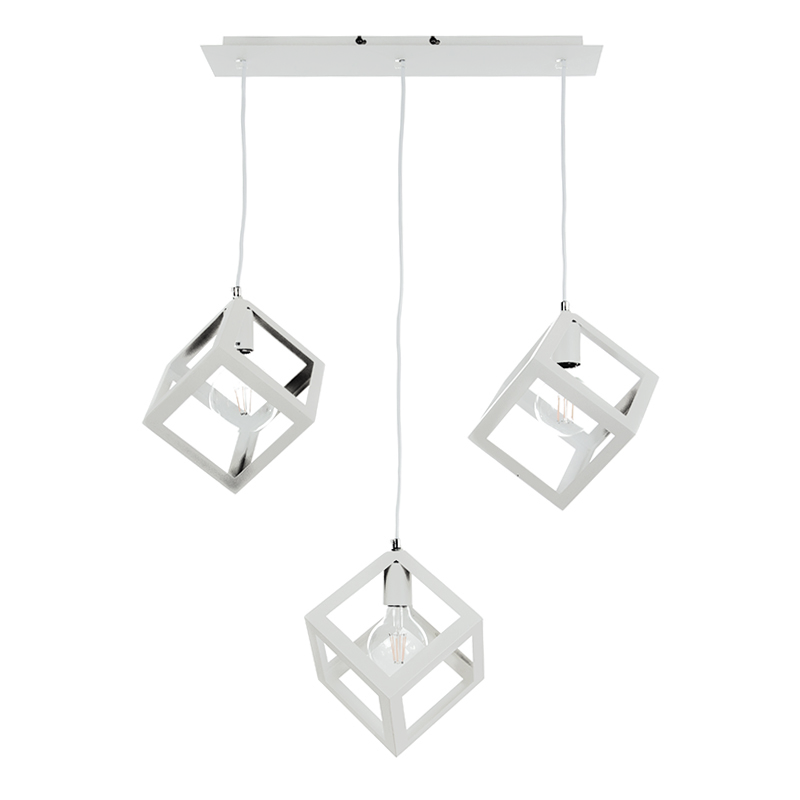 Πρόκειται για ένα μεταλλικό κρεμαστό φωτιστικό σε χρώμα λευκό. Η μίνιμαλ γεωμετρική του σχεδίαση το τοποθετεί σε οποιονδήποτε μοντέρνο εσωτερικό χώρο. Η ανάρτησή του ρυθμίζεται για να λάβει το επιθυμητό ύψος. Το φως διαχέεται σε όλον τον χώρο ομοιόμορφα.