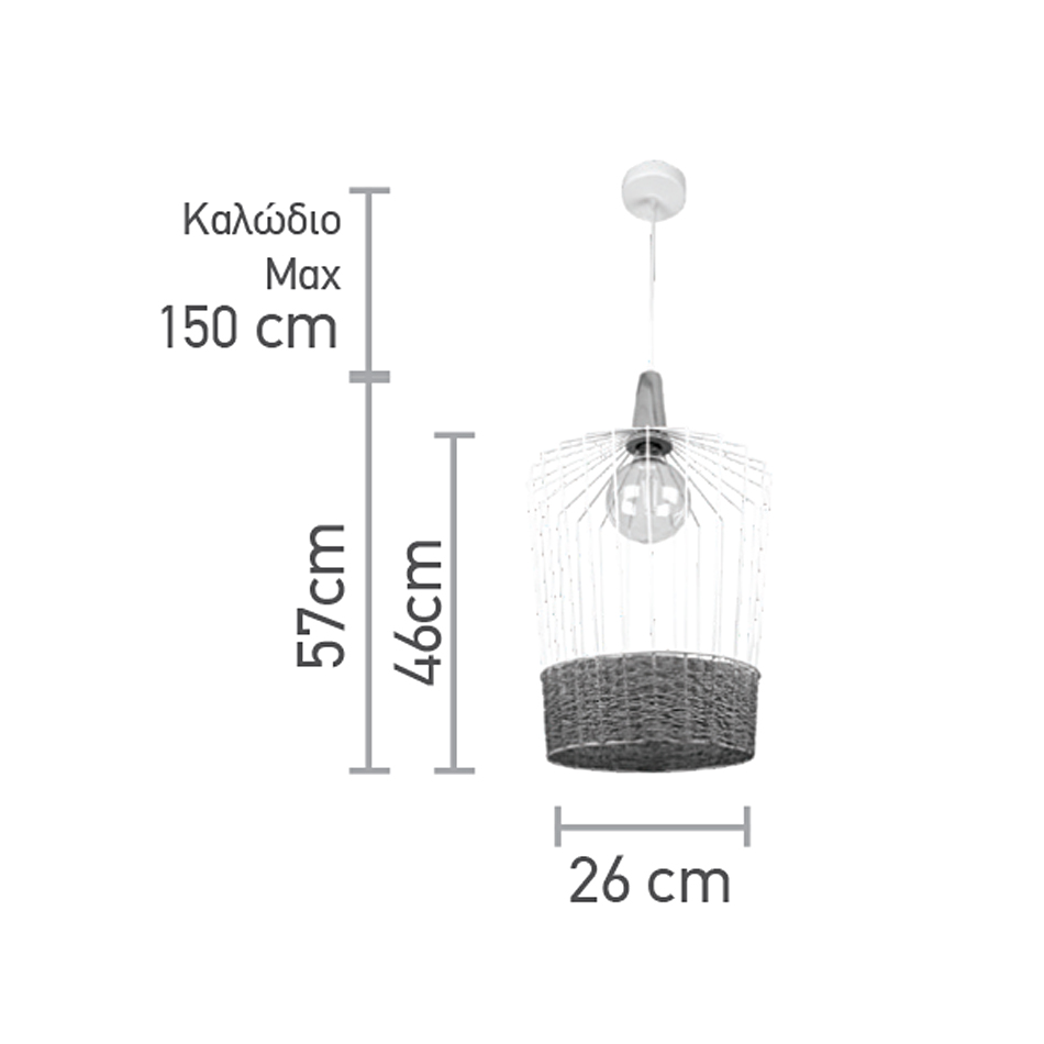 Πρόκειται για ένα φωτιστικό οροφής κατασκευασμένο από  λευκό μέταλλο. Η σχεδίασή του επιτρέπει τη διάχυση του φωτός. Το ξύλο και το σχοινί προσδίδουν τη ζεστασιά που χρειάζεται. Επιπλέον ρυθμίζεται για να λάβει το ιδανικό ύψος για κάθε χώρο.
