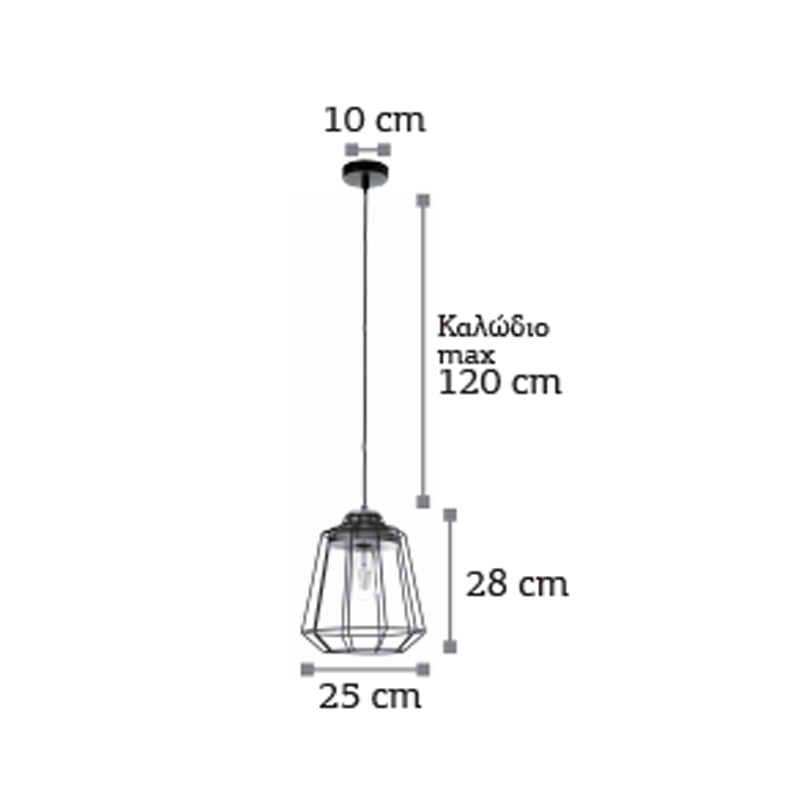 InLight Κρεμαστό φωτιστικό από μαύρο μέταλλο και ξύλο 1XE27 D:25cm (4388)