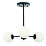 Πρόκειται για ένα μαύρο μεταλλικό φωτιστικό με λευκή οπαλίνα στο τελείωμα και τρεις λαμπτήρες. Η μίνιμαλ σχεδίασή του το τοποθετεί ιδανικά σε οποιονδήποτε μοντέρνο εσωτερικό χώρο, ακόμα και αν είναι χαμηλοτάβανος.