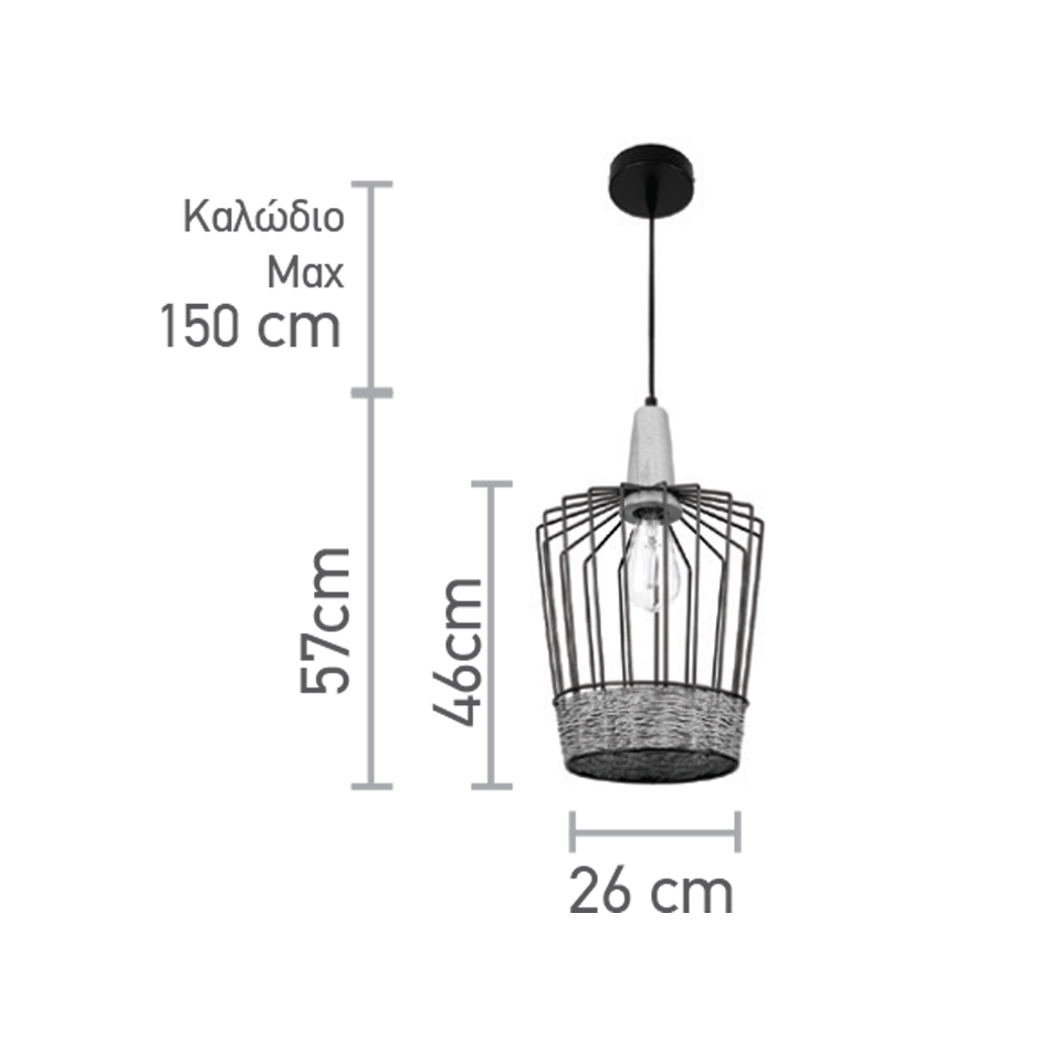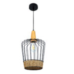 InLight Κρεμαστό φωτιστικό από μαύρο μέταλλο, σχοινί και ξύλο 1XE27 D:26cm (4025-Α)