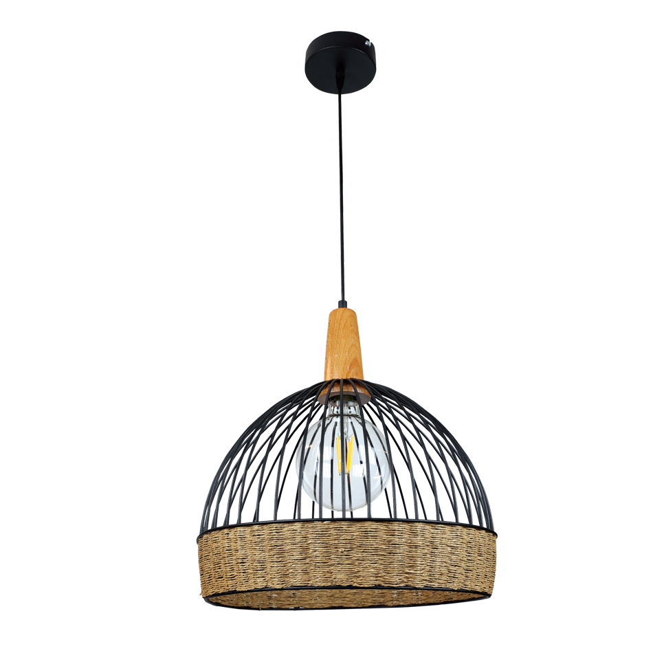 Πρόκειται για ένα φωτιστικό οροφής κατασκευασμένο από  μαύρο μέταλλο. Η σχεδίασή του επιτρέπει τη διάχυση του φωτός. Το ξύλο και το σχοινί προσδίδουν τη ζεστασιά που χρειάζεται. Επιπλέον ρυθμίζεται για να λάβει το ιδανικό ύψος για κάθε χώρο.