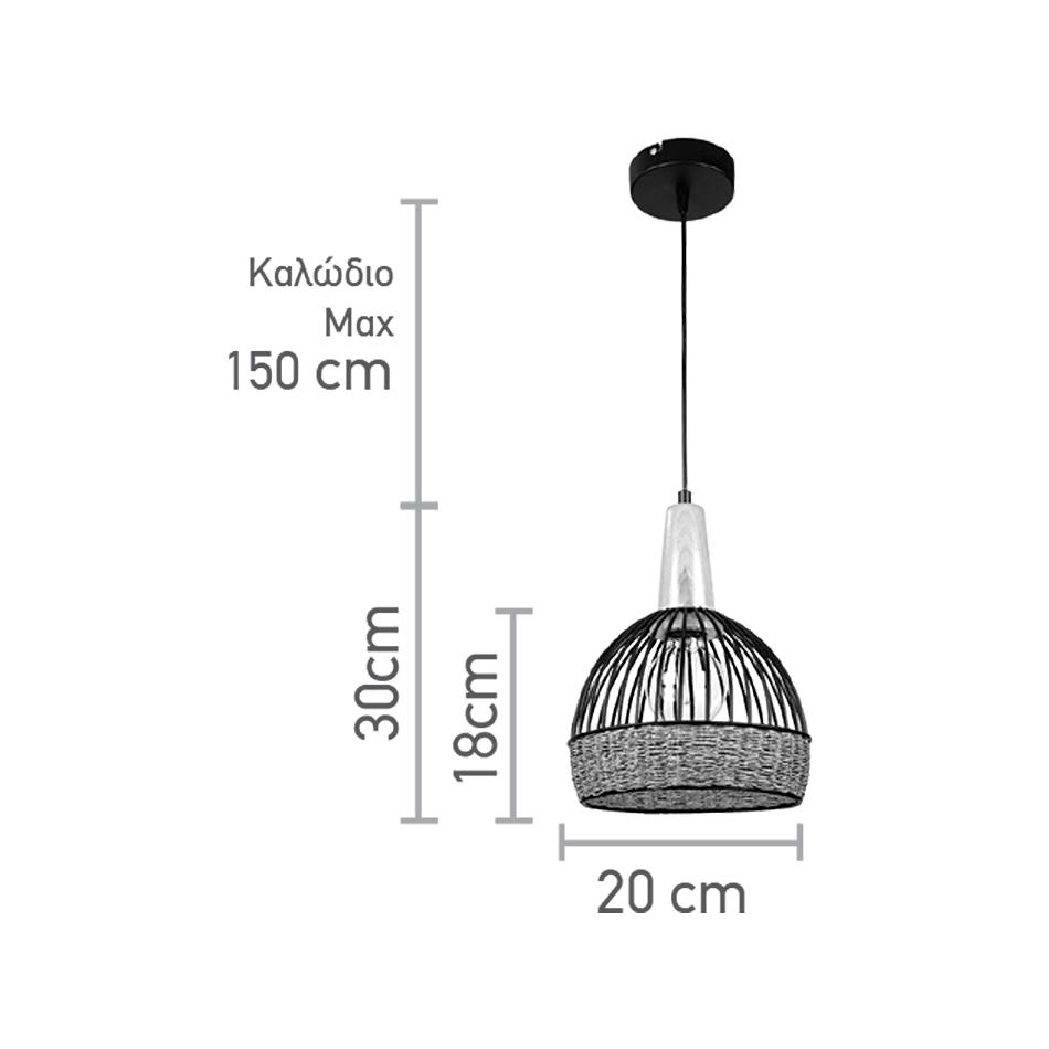 InLight Κρεμαστό φωτιστικό από μαύρο μέταλλο, σχοινί και ξύλο 1XE27 D:20cm (4027-Β)