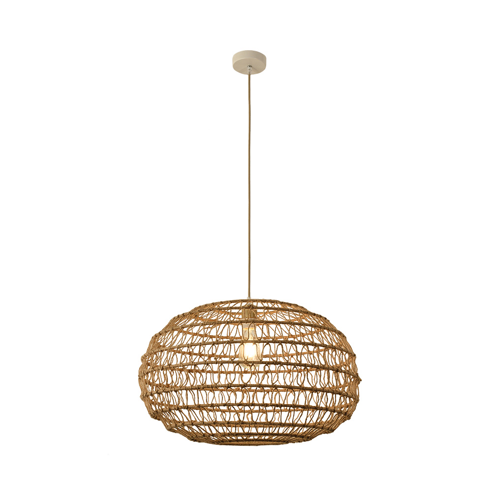 Ένα κρεμαστό φωτιστικό κατασκευασμένο από καφέ σχοινί κατάλληλο για ποικίλους εσωτερικούς χώρους. Αποτελεί την ιδανική επιλογή για όποιον επιθυμεί μια πιο χαλαρή διάθεση στον χώρο του.