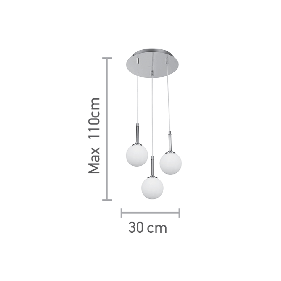 Πρόκειται για ένα χρυσαφί μεταλλικό φωτιστικό με λευκή οπαλίνα και τρεις λαμπτήρες. Το ύψος μπορεί να ρυθμιστεί ώστε να προσαρμοστεί στον μοντέρνο χώρο τοποθέτησής του.