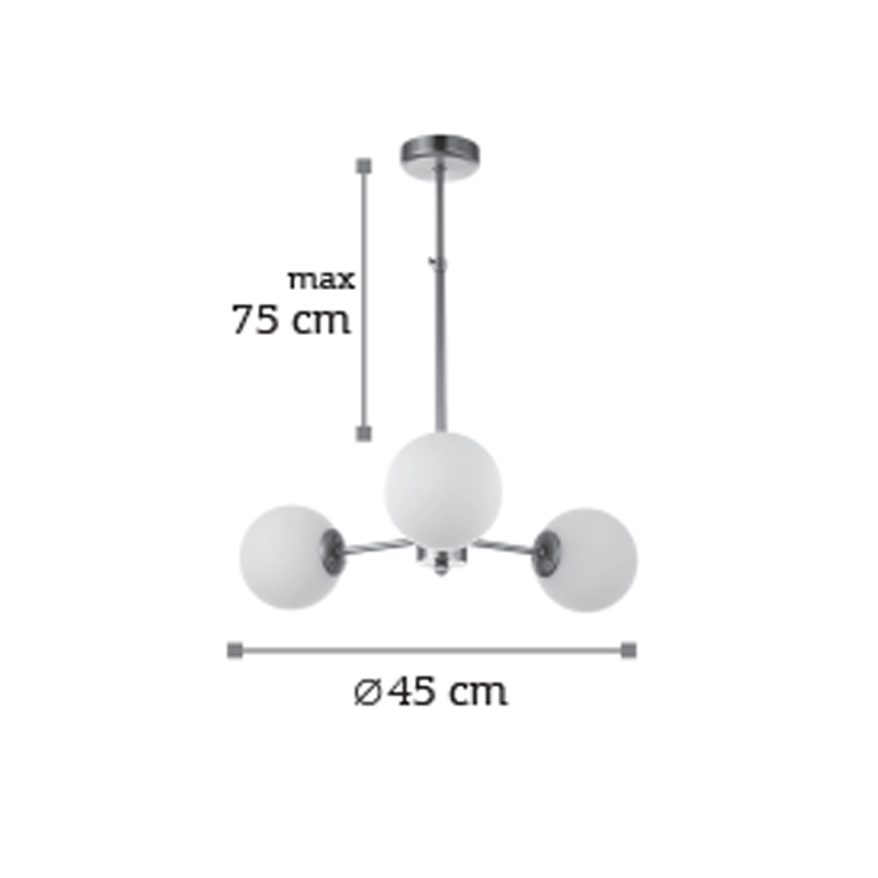 Πρόκειται για ένα χρυσό ματ μεταλλικό φωτιστικό με λευκή οπαλίνα στο τελείωμα και τρεις λαμπτήρες. Η μίνιμαλ σχεδίασή του το τοποθετεί ιδανικά σε οποιονδήποτε μοντέρνο αλλά και πιο κλασσικό εσωτερικό χώρο. Η ανάρτησή του είναι μεταλλική και ρυθμιζόμενη ώστε να προσαρμοστεί ιδανικά στον χώρο τοποθέτησής του.