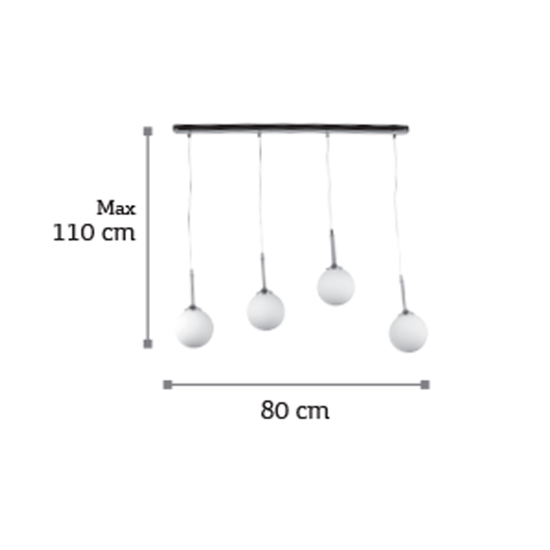 InLight Κρεμαστό φωτιστικό από χρώμιο μέταλλο και λευκή οπαλίνα 4XG9 D:80cm (4515-4 ΡΑΓΑ)