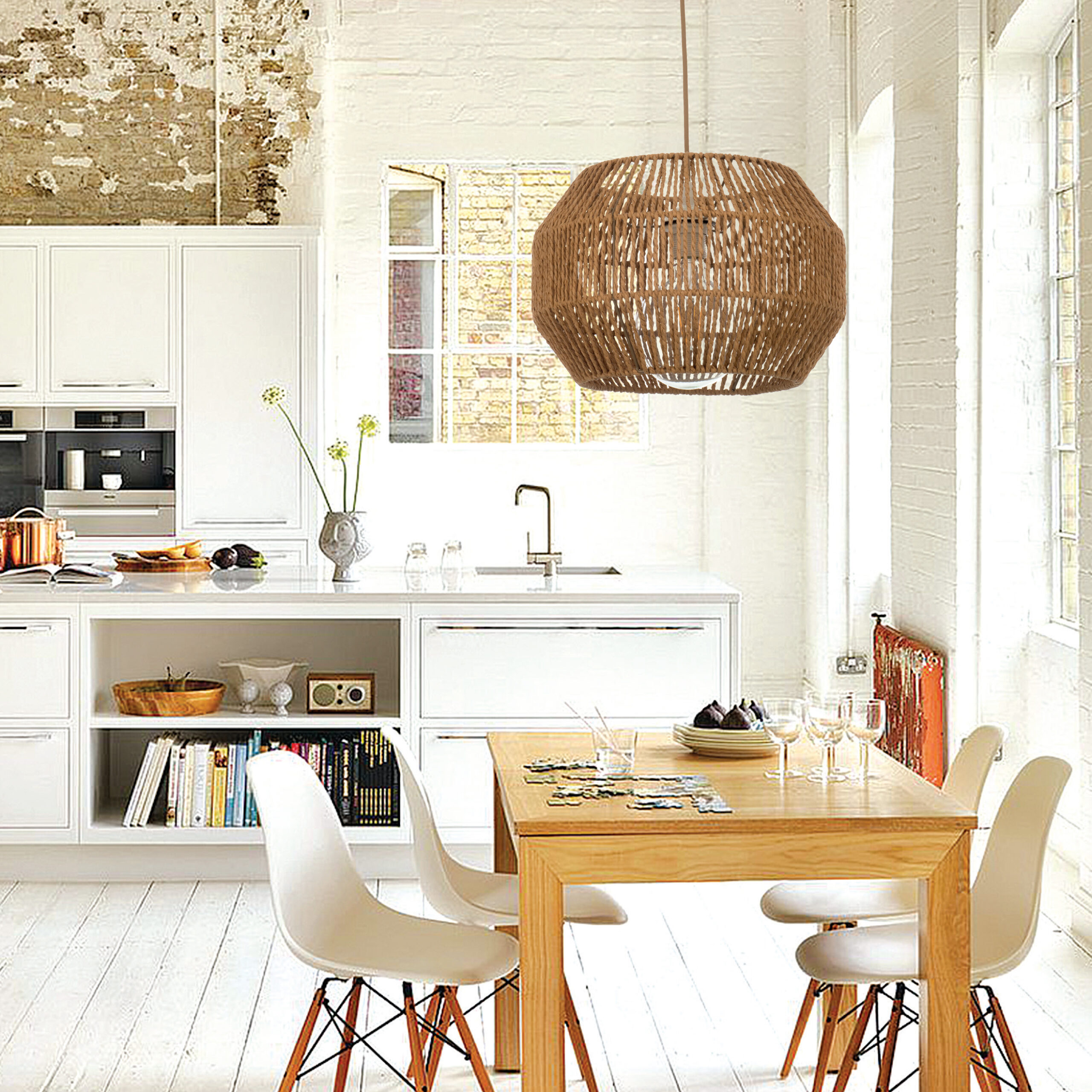 Ένα κρεμαστό φωτιστικό κατασκευασμένο από καφέ σχοινί κατάλληλο για ποικίλους εσωτερικούς χώρους. Αποτελεί την ιδανική επιλογή για όποιον επιθυμεί μια πιο χαλαρή διάθεση στον χώρο του. Η ανάρτηση προσαρμόζεται στο ύψος του κάθε χώρου.