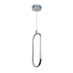 Πρόκειται για ένα χρώμιο μεταλλικό κρεμαστό φωτιστικό μίνιμαλ σχεδίασης. Η λευκή ακρυλική του επιφάνεια καλύπτει τον LED φωτισμό θερμής απόδοσης.