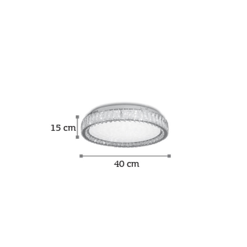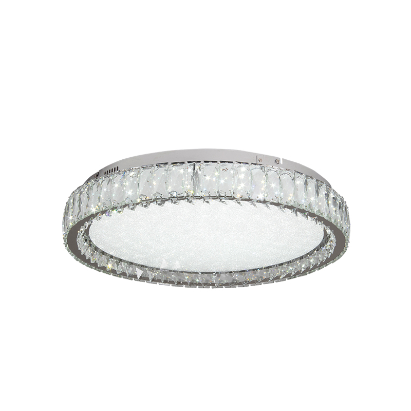 Πρόκειται για ένα χρώμιο μεταλλικό φωτιστικό οροφής κυκλικής σχεδίασης. Τα κρύσταλλα προσθέτουν λάμψη και αντανακλούν τον φωτισμό φυσικού χρώματος.